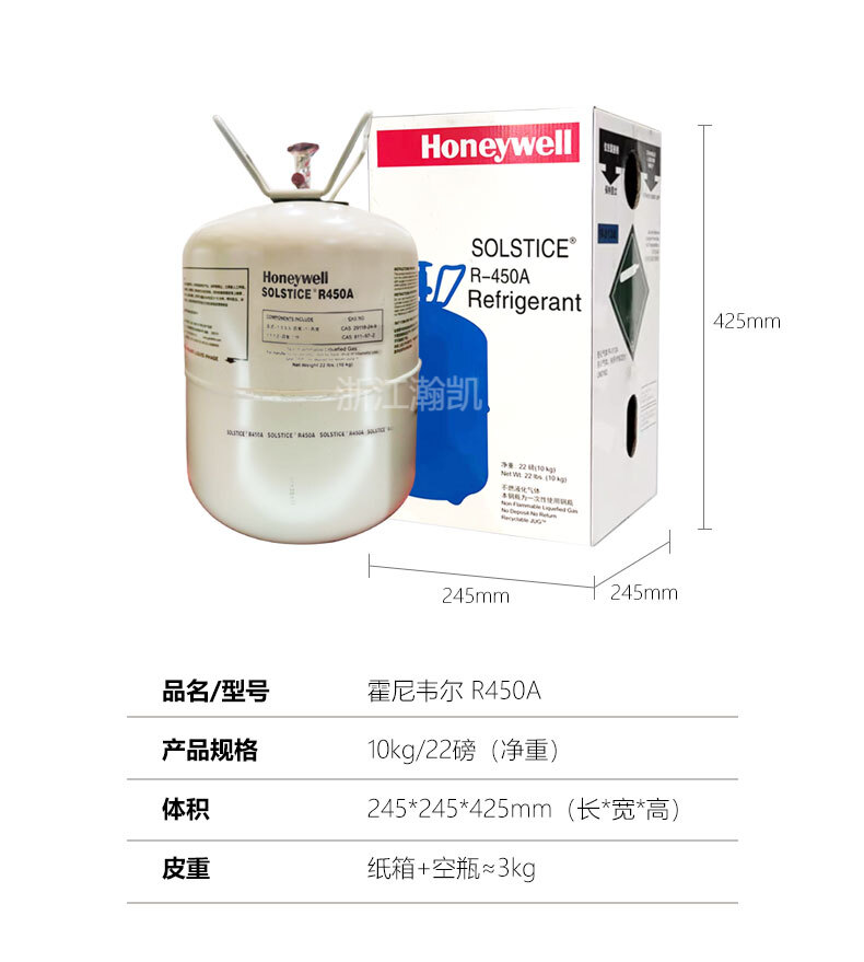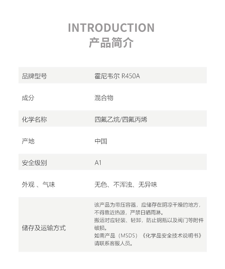 R450A制冷劑,商品名稱(chēng)Solstice®N13,R450A是一種非易燃,低GWP替代HFC-134a的中溫應(yīng)用制冷劑,適用于如熱泵,風(fēng)冷和水冷式冷卻器,區(qū)域供熱和制冷系統(tǒng),自動(dòng)售貨機(jī)和飲料分配器,CO2級(jí)聯(lián)系統(tǒng)等。
