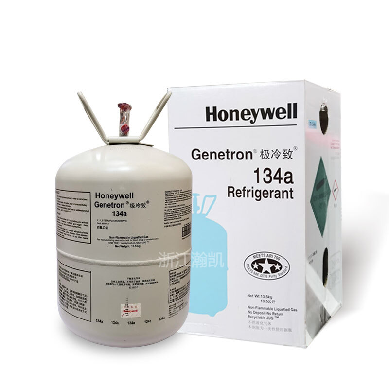 霍尼韋爾R-134a制冷劑,別名R134a、HFC134a、HFC-134a、四氟乙烷,商品名稱為Genetron 134a。由于霍尼韋爾R-134a屬于HFC類物質(zhì)(非ODS物質(zhì)Ozone-depleting Substances)——因此完全不破壞臭氧層,是當前絕大多數(shù)國家認可并推薦使用的制冷劑,也是環(huán)保制冷劑,廣泛用于新制冷空調(diào)設(shè)備上的初裝和維修過程中的再添加。