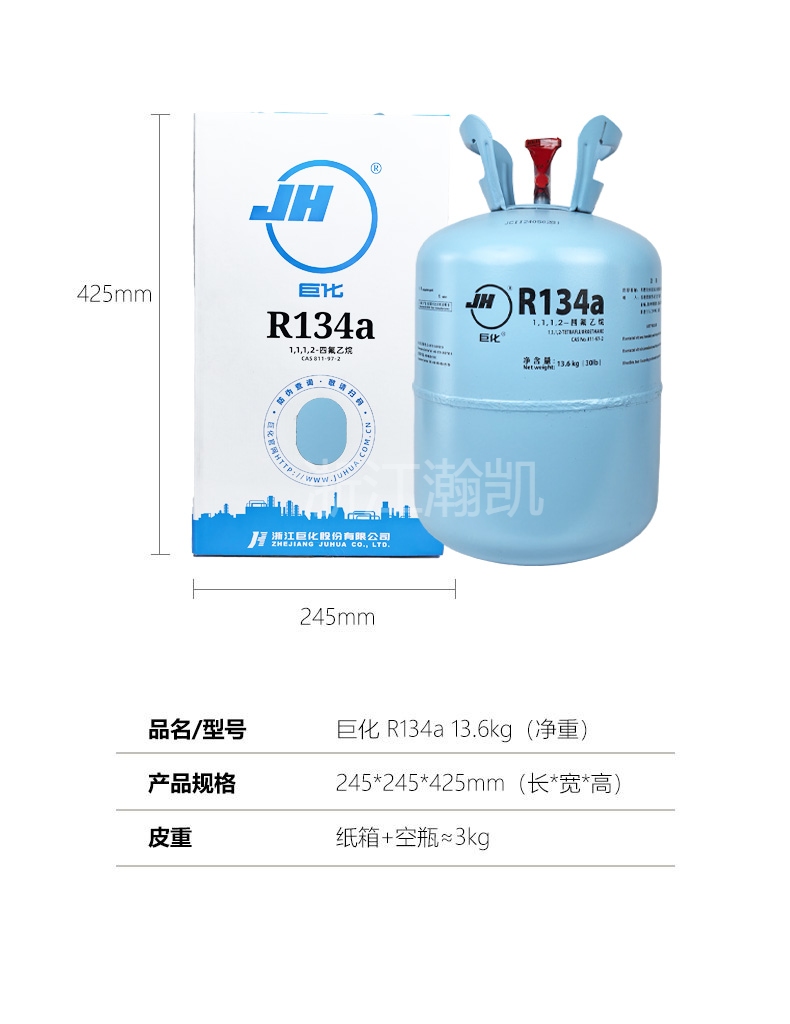 巨化R-134a制冷劑,別名R134a、HFC134a、HFC-134a、四氟乙烷。由于巨化R-134a屬于HFC類物質(zhì)(非ODS物質(zhì)Ozone-depleting Substances)——因此完全不破壞臭氧層,是當(dāng)前絕大多數(shù)國(guó)家認(rèn)可并推薦使用的制冷劑,廣泛用于新制冷空調(diào)設(shè)備上的初裝和維修過(guò)程中的再添加。