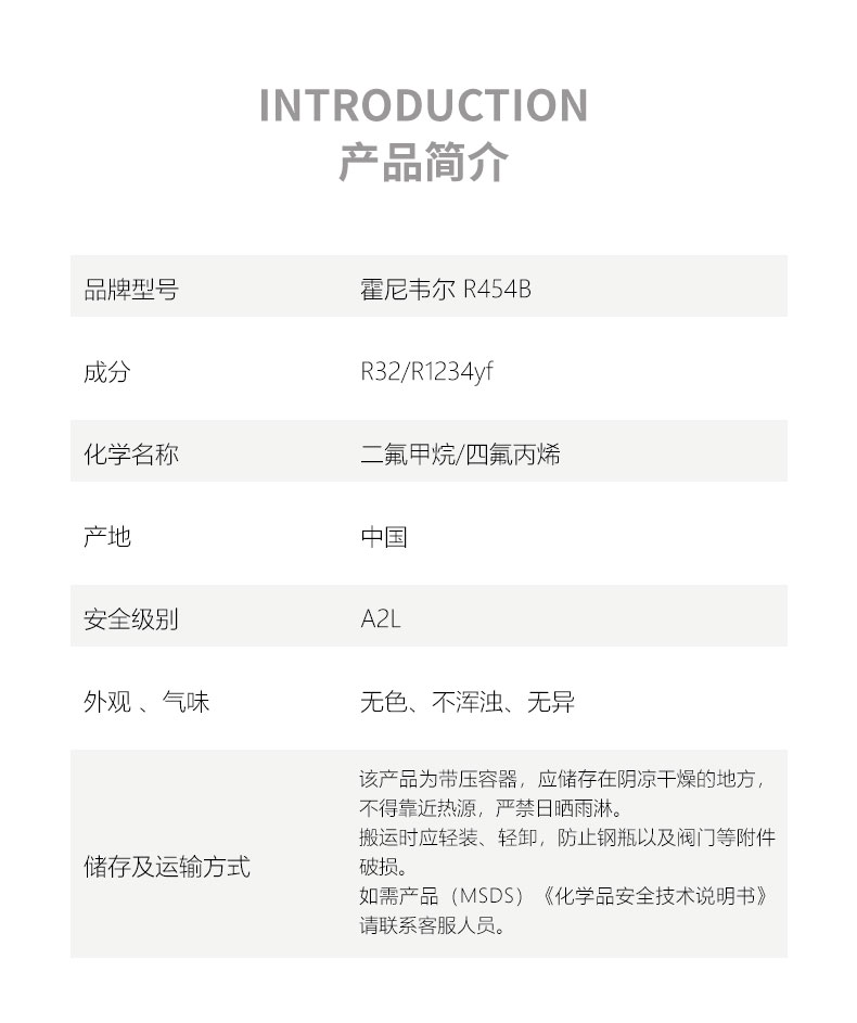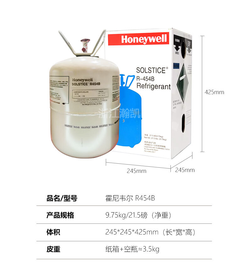 品牌型號(hào):品牌型號(hào):Honywell Solstice? R454B 產(chǎn) 地:中國(guó) 化學(xué)成分:R1234yf/R32 分 類:混合物 安全級(jí)別:A2L(無毒不可燃) 純 度:≥99.98% 包裝規(guī)格:9.75kg
